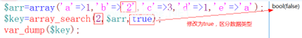 默认情况下,array_search不区分数据类型。如果希望它区分数据类型,请将array_search的第三个参数修改为true。