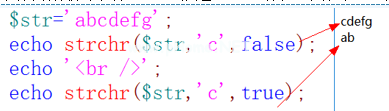 函数:截取某个字符的语法:strr的第三个参数($ str,char [,boolean])表示strr截取的字符是字符串的右半部分还是左半部分。默认值为false,表示右边部分,保留截取的字符。如果修改为true,表示截取左边部分,不保留截取的字符。Strstr是strrr的另一个名字。区分大小写。