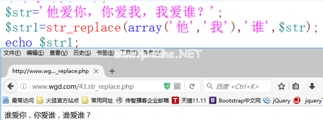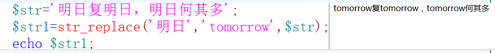 函数:替换字符串中的字节语法:str_replace(替换前字符,替换后字符,$ str)