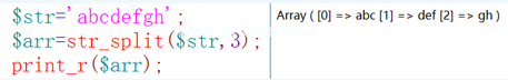 函数:将字符串拆分成数组。语法:str _ split ($ arr,num)