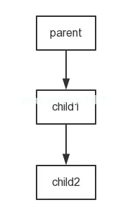 //创建父组件var parent=new Vue();//创建一个child1组件,其父组件指向parent var child 1=new vue({ parent : parent });//创建一个child2组件,其父组件指向child 1 varchild 2=new vue({ parent : child 1 });//监听父组件中名为test的事件,绑定一个回调函数父。$ on ('test ',function(){ console . log(' parent notified ');});//监听child1组件中名为test的事件,绑定一个回调函数Child1。$ on ('test ',function(){ console . log(' child 1 notified ');});//监听child2组件中名为test的事件,绑定一个回调函数Child2。$ on ('test ',function(){ console . log(' child 2 notified ');});话虽如此,父母、子女1和子女2之间的关系可以如下图所示:
