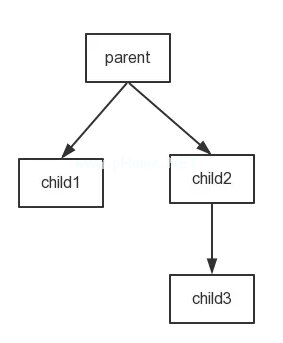 //创建父组件实例var parent=new Vue()//创建child1组件实例,其父组件指向parent var child 1=new Vue({ parent : parent })//创建child2组件实例。父组件指向parent var child 2=new vue({ parent : parent })//以创建child3组件实例。其父组件指向child 2 archid 3=new vue({ parent : child 2 })//侦听child1组件中名为test的事件,并绑定回调函数child1。$on('test ',Function(){ console . log(' child 1 notified ')})//侦听child2组件中名为test的事件,并绑定一个回调函数child2。$on('test ',Function(){ console . log(' child 2 notified ')})//侦听child3组件中名为test的事件,并绑定一个回调函数child3。$on('test ',function(){ console . log(' child 3 notified ')})的四个组件父级、子级1、子级2和子级3之间的关系如下图所示:
