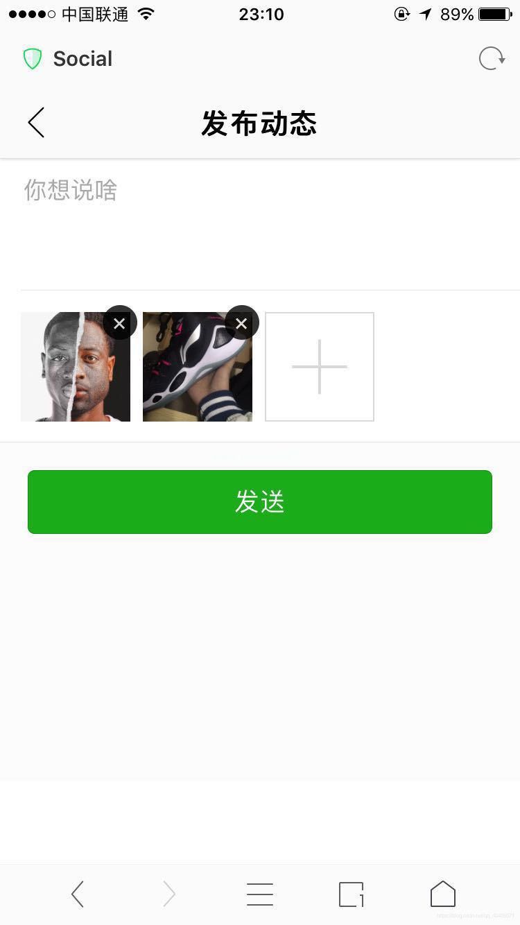 模板div myheader :title=' '发布动态I class=' icon font icon-范慧1 left ' slot=' left ' @ click=' go back '/I/我的标题div class=' upload ' div v-if=' UserInfo ._id!-图片上传-div class=' weui-gallery ' id=' gallery ' span class=' weui-gallery _ _ img ' id=' gallery img '/span div class=' weui-gallery _ _ opr ' a href=' JavaScript : ' rel='外部无跟随' class=' weui-gallery _ _ del ' I class=' weui-icon-delete weui-icon _ gallery-delete '/I/a/div/div class=' weui-cells weui-cells _ form ' div class=' weui你想说啥行=' 3 '/textarea/div/div class=' weui-cell ' div class=' weui-cell _ _ BD ' div class=' weui-uploader ' div class=' weui-uploader _ _ BD ' ul class=' weui-uploader _ _ files ' id=' uploader files ' Li ref=' files ' class=' weui-uploader _ _ file ' v-for='(image,index)in images ' 3360 key=' index ' 3: style=' '背景图像发送/a /div解锁v-else/解锁/div/模板重点部分在于