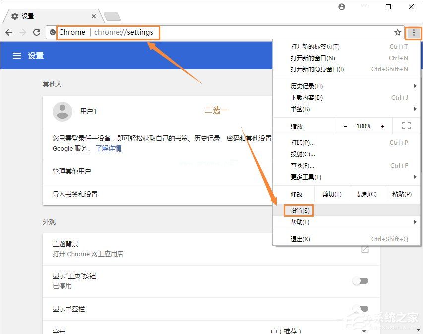 1.点击Chrome菜单按钮。这个按钮位于窗口的右上角,看起来像三条短平行线。从出现的菜单中选择设置。或者,您可以直接在地址栏中输入chrome :///settings/并按回车键。