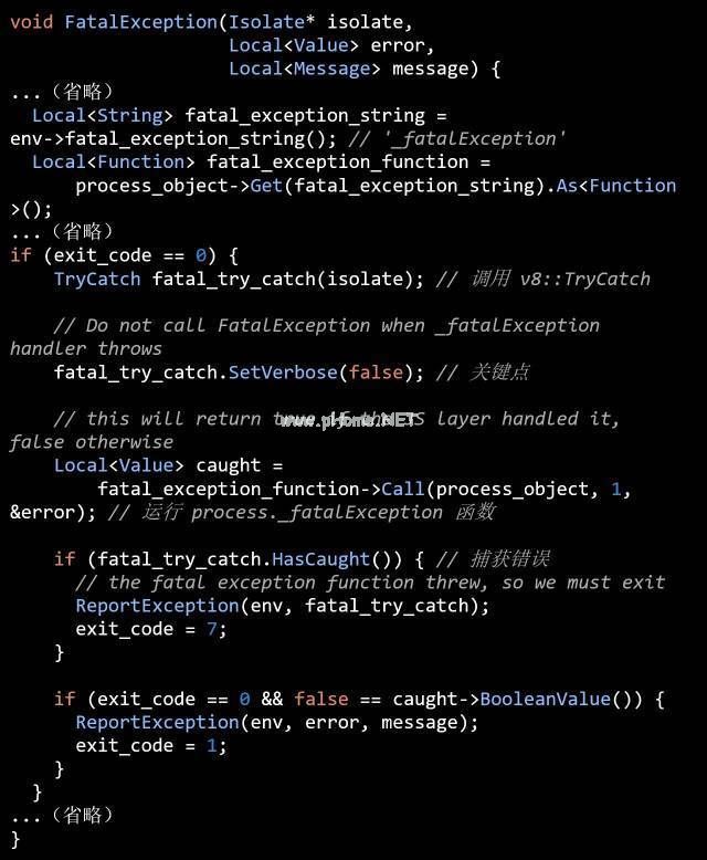在调用宿命论异常函数之前,先调用v8: try catch :3360设置verbose为false,那么运行时抛出的异常不会再次触发宿命论异常;捕获运行错误后,将exitcode设置为7并返回;这就解释了为什么uncaughtException中抛出的异常不会再次触发回调,因为EventEmitter不能为你做这样的事情。