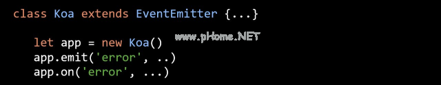 不要显示源代码。很简单。去找你自己。例如,koa的应用程序是基于EventEmitter的扩展,因此它可以监控错误。