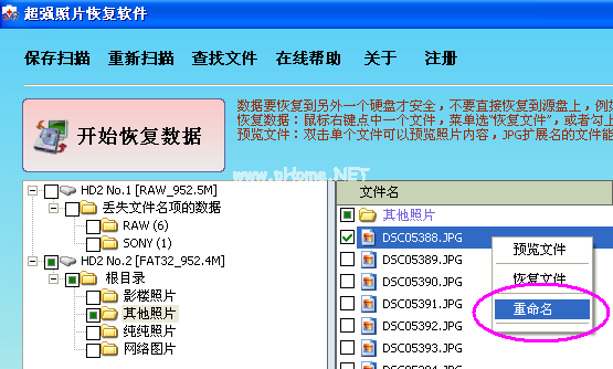 3.数据预览功能,可以在恢复数据前预览文件内容是否正确。如果JPG文件的内容正确,则可以恢复该文件。对于单反相机的RAW格式图片,有些型号的相机图片可以预览缩略图(不能预览的RAW图片并不代表这个文件不能恢复)。