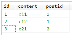 第二章数据表,名为comment,存储博客文章的评论,数据如下: