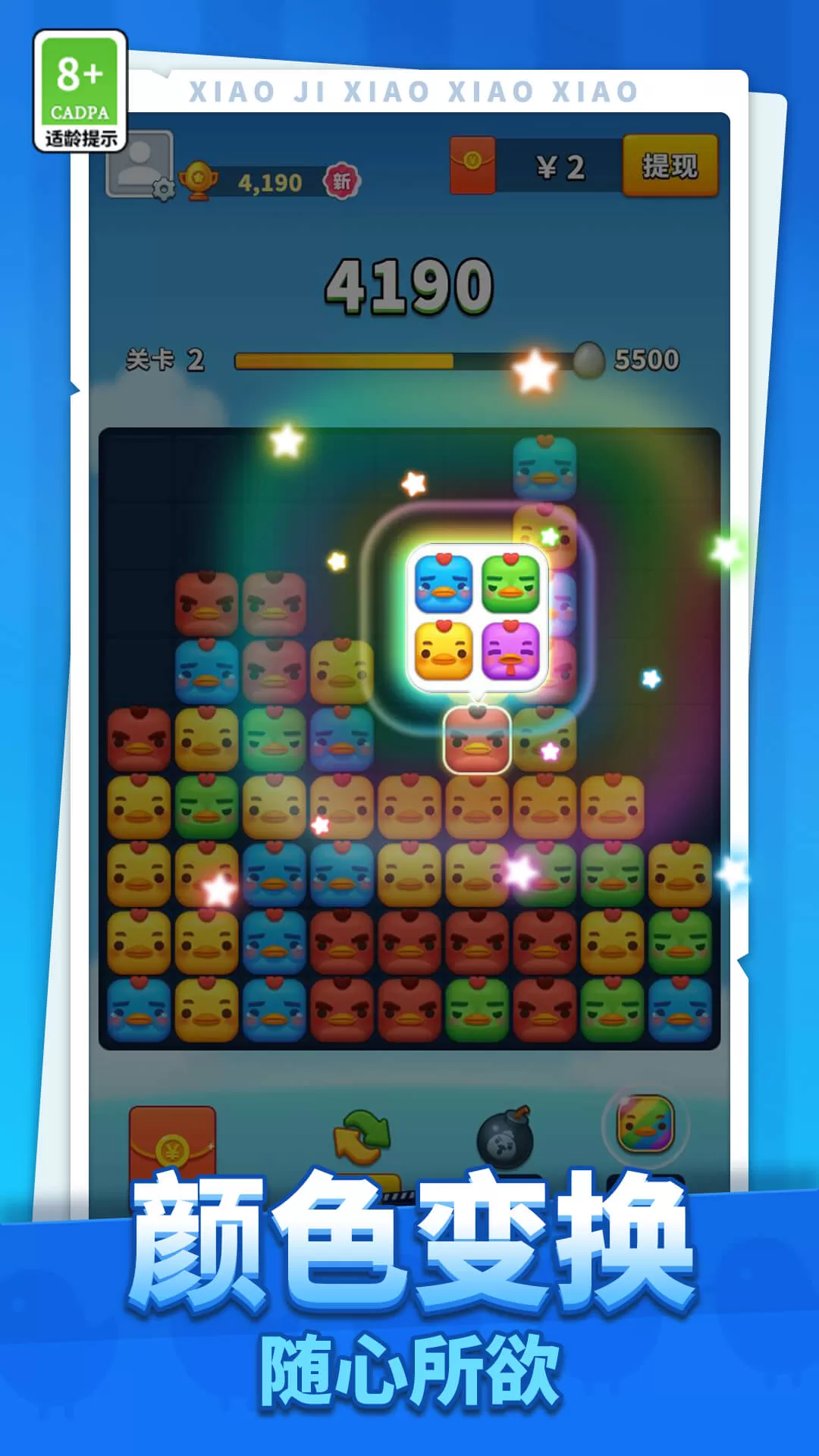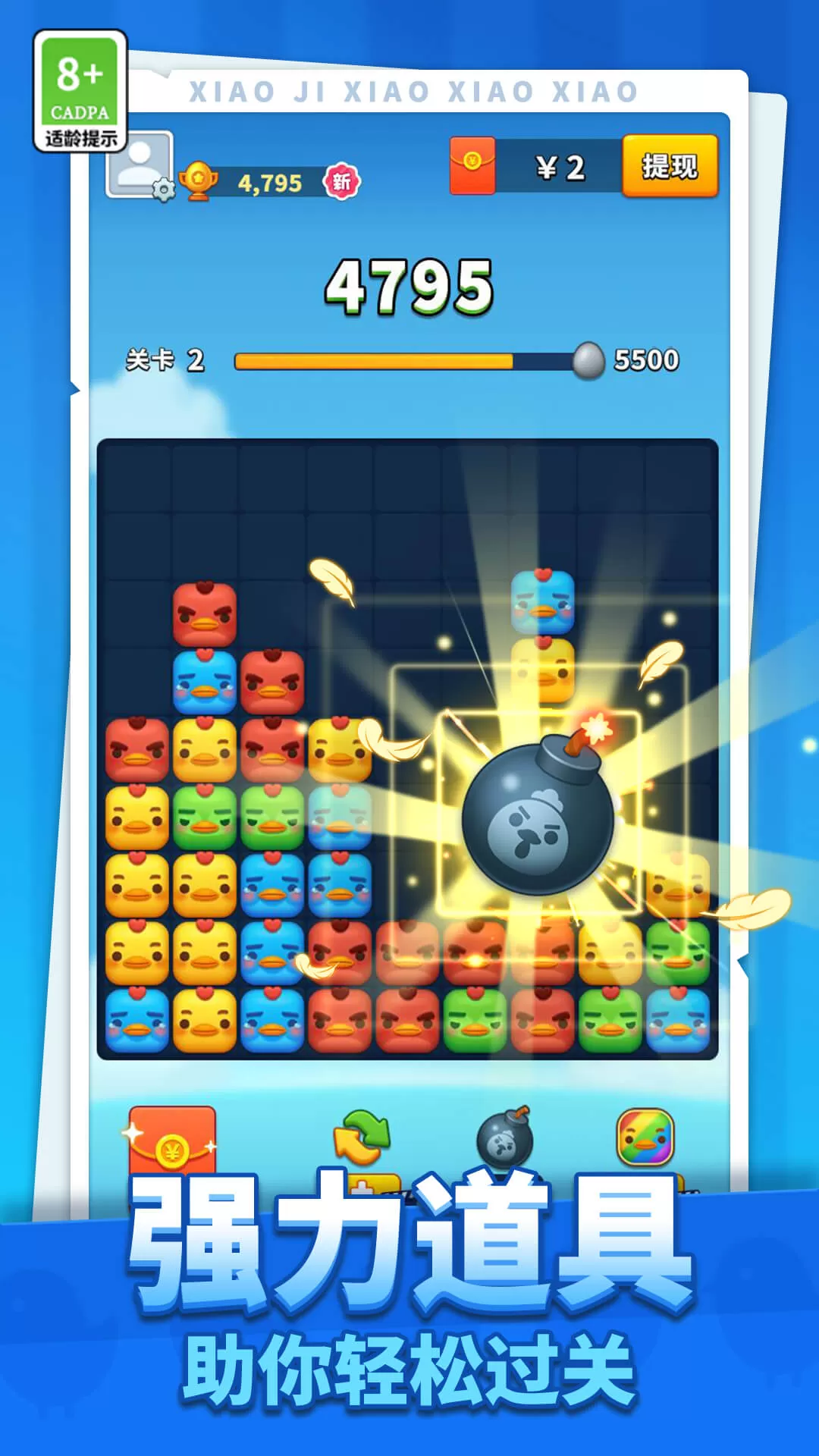 3. 简单操作:只需点击或滑动连接相同颜色的小鸡即可完成消除,易上手。